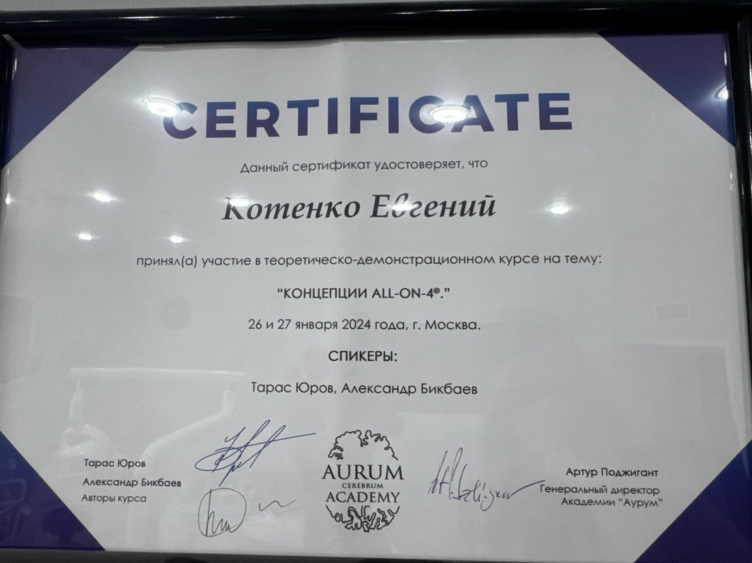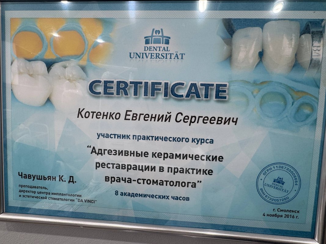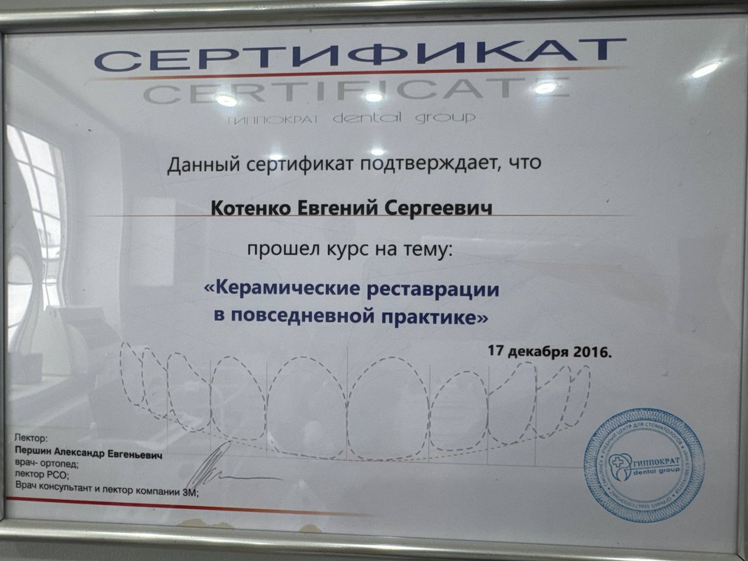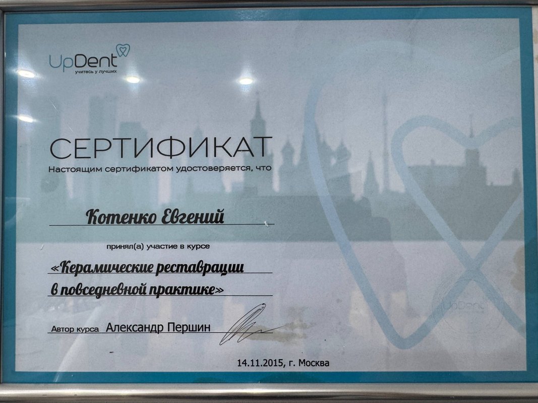 Меня устроили и цена, и качество, и отношение. Я приходил к доктору Евгению Сергеевичу Котенко по протезированию. Были: консультация, подготовка, импланты и мосты, он делал штифты, удалял корни и восстанавливал старые. У меня только положительные впечатления от его работы.