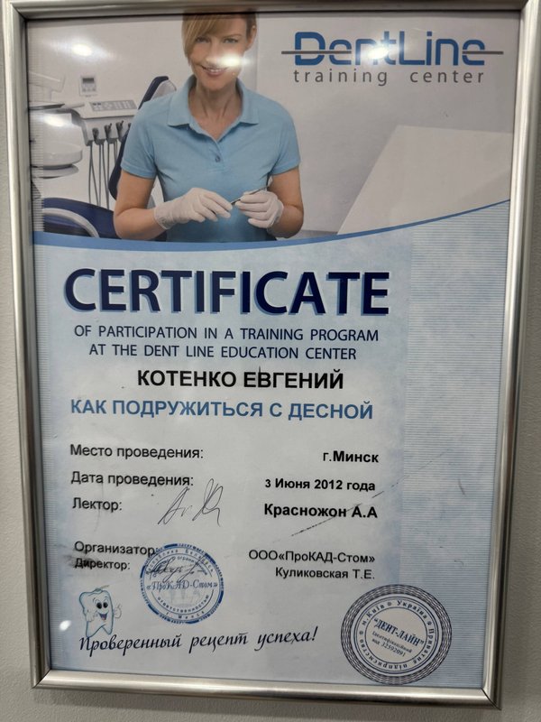 Доктора Евгения Сергеевича Котенко ценим за его профессионализм: он смог психологически поддержать моего ребенка 12 лет, быстро и качественно выполнить большой объем работы без боли и проблем. Мы живем в другом городе и без лишних хлопот приехали на прием благодаря помощи с билетами и размещением. Выражаем благодарность доктору и администраторам за деликатное, человеческое и психологически грамотное сопровождение. Мы полностью удовлетворены оказанными услугами и, возможно, при необходимости приедем снова, несмотря на расстояние.