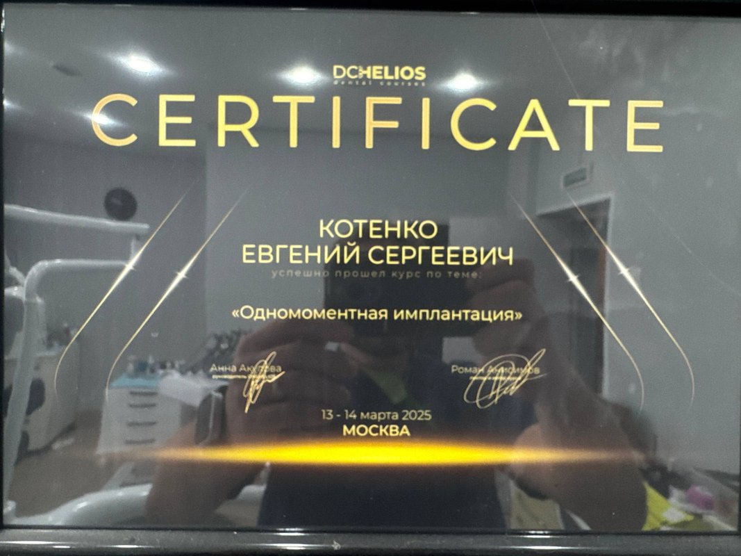 Хочу отметить доктора Котенко Евгения Сергеевича и Роберта Лаврентиновича Петакчян, они молодец, всё сделали отлично. Я проходил у них имплантацию и снимал швы. Персонал клиники встречает с чаем и кофе, записаться к врачу удалось быстро.
